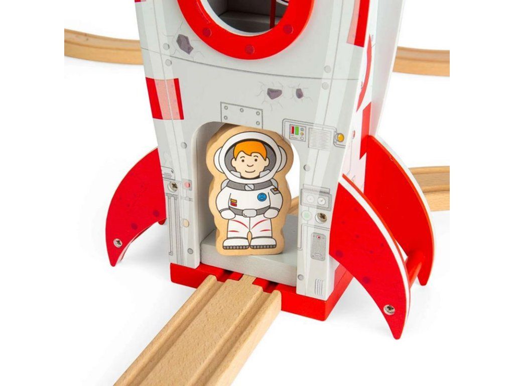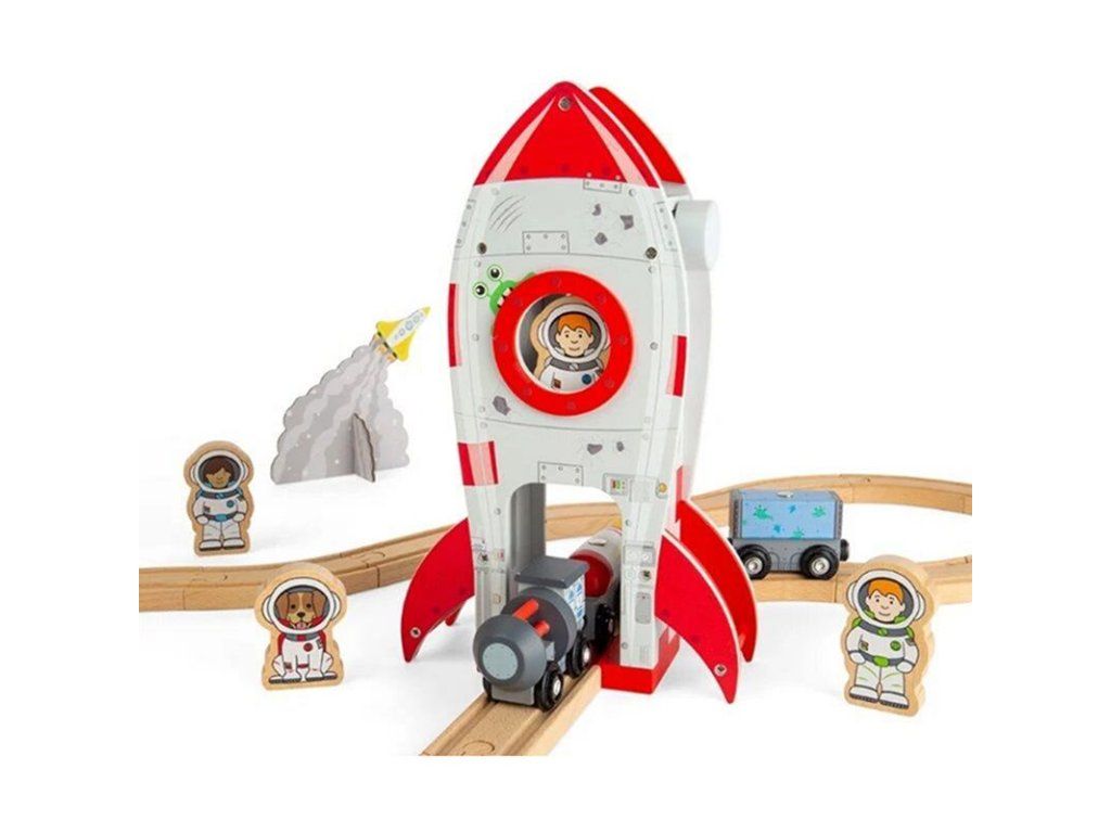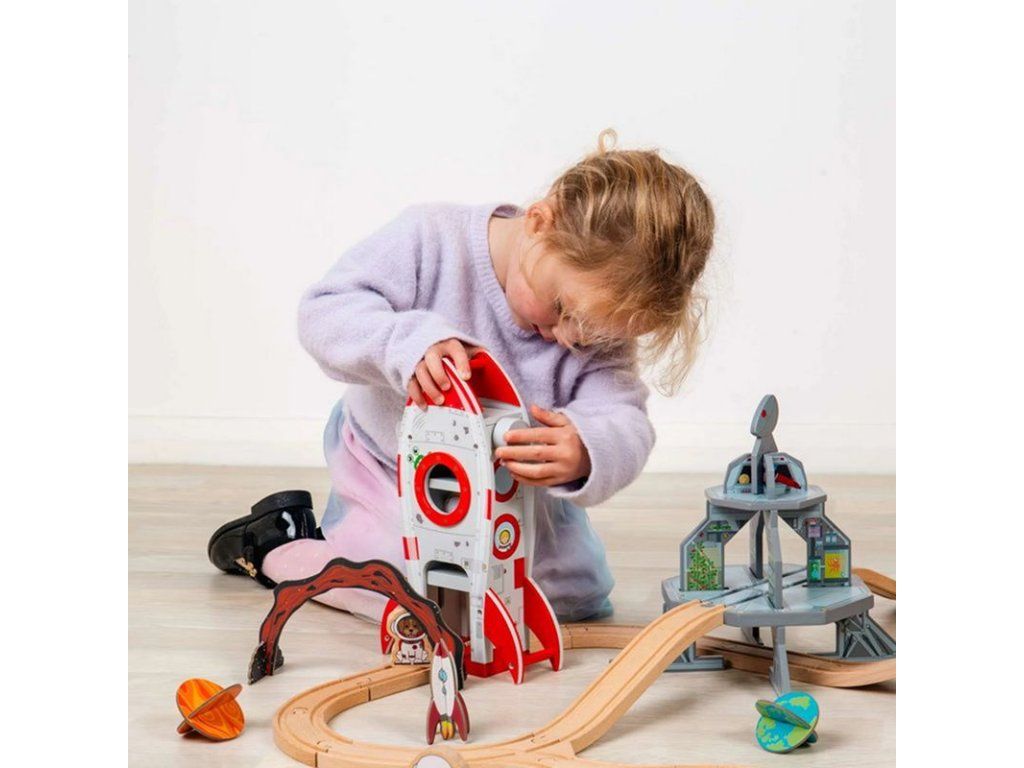 Vesmírná raketa jako tunel do vláčkodráhy je doplněk k dřevěné vláčkodráze, který zve malé astronauty k objevování galaxie přímo z pohodlí dětského pokoje. Pro ještě více zábavy ji můžete kombinovat s vesmírným vláčkem a vytvořit vlastní mezihvězdnou trasu. Tato interaktivní hračka nabízí spoustu herních možností. Součástí je dřevěná figurka astronauta a funkční výtah, který ho dopraví až do startovací pozice. Raketu lze využít samostatně při volné hře nebo ji připojit ke kolejišti, což rozšiřuje možnosti hraní.