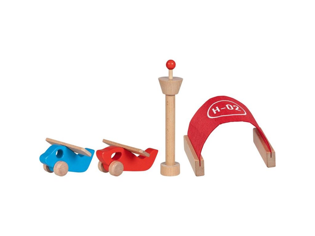 Puzzle podlahové - Letištní plocha z filce + 4 dřevěné hračky, Goki