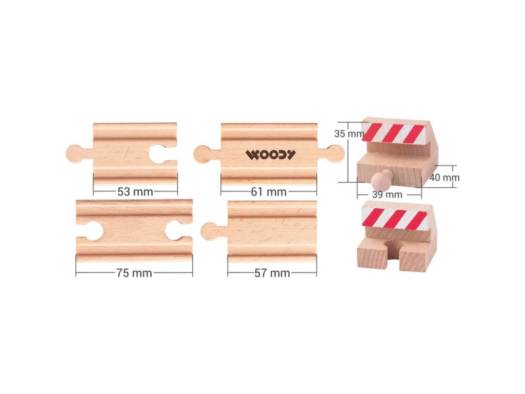 Splňuje všechny normy EU. Vláčkodráhy a příslušenství Woody lze kombinovat se všemi dalšími dřevěnými vláčkodráhami na trhu - Bigjigs, Bino, Brio, Ikea, Janod, Legler, Maxim, Mentari, Woto, Thomas, KidKraft, Tesco - Little Steps, apod.