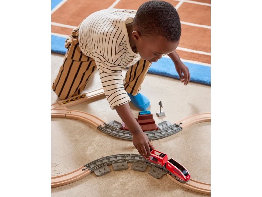 Sada je vhodná jako první vláčkodráha, ke které lze dokupovat další koleje a příslušenství. S vlakovou sadou a natahovacím vláčkem si užijete spoustu zábavy. Vláček je poháněný 100 % energií batolat, nepotřebuje žádné baterie, aby vykouzlil úsměv na dětských tvářích. Nechte cestující nastoupit na nádraží, natáhněte červený vláček a sledujte, jak uhání. Když zpomalí, stačí jej znovu natáhnout a hra může pokračovat – bez zbytečných slziček. Díky jednoduchým funkcím a klasickým Brio magnetům je tato vláčková sada s venkovským motivem skvělým rozšířením každé kolekce Brio World, které přináší nekonečnou radost malým strojvůdcům.