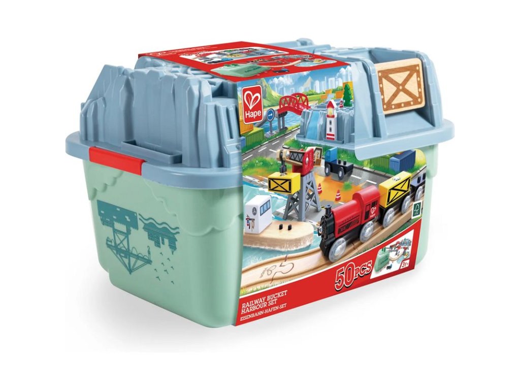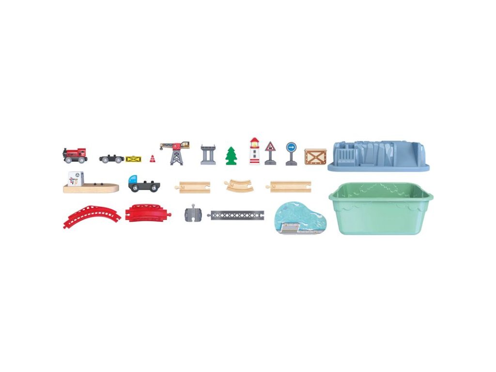Vláčkodráha Hape - V úložném boxu, Přístaviště, 50 dílů