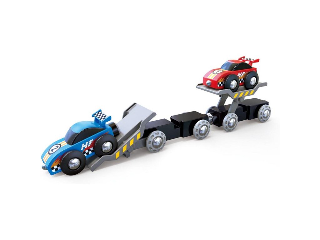 Na dalekých cestách autům usnadní cestování vagón, který je dokáže naložit a bezpečně je přepravit po železničních tratích. Ostatní vagónky a mašinka se připojují pomocí magnetů. Pomocí rampy naložte auta na transportní vagóny a vlak může vyrazit. Vyrobeno z kvalitního a odolného materiálu.
